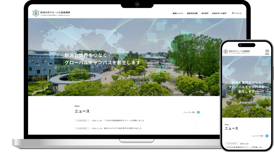新潟大学の「グローバル推進機構」の設立に伴い、国際化を推進するための多言語対応Webサイトを制作しました。このサイトは新潟大学の国際的活動を可視化し、留学生や研究者を含む世界中の多様なユーザーに対応する設計になっています。